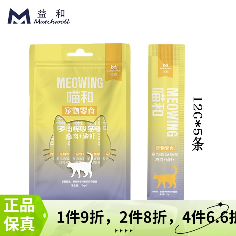 益和猫条 猫零食 猫湿粮 蓝猫布偶加菲猫全猫通用 益和鸡肉磷虾猫条一包(12G*5条)