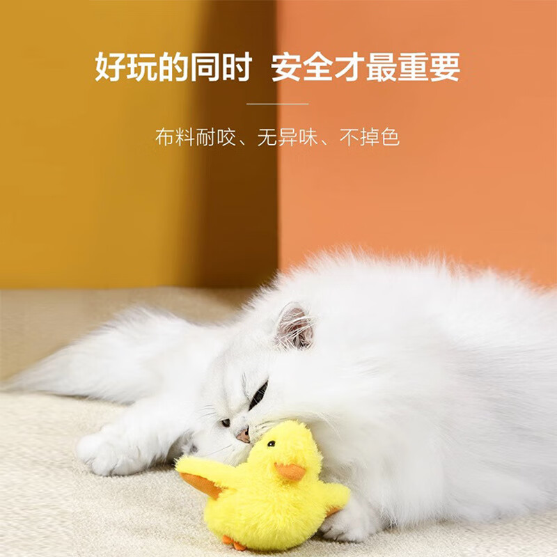 猫玩具自嗨解闷逗猫球智能小猫叫叫球电动智能玩具自动球引力冲鸭宠物猫咪玩具宠物用品发声鸭子 黄色 英文包装