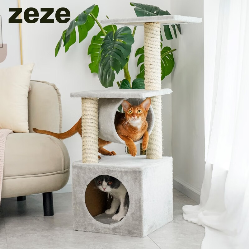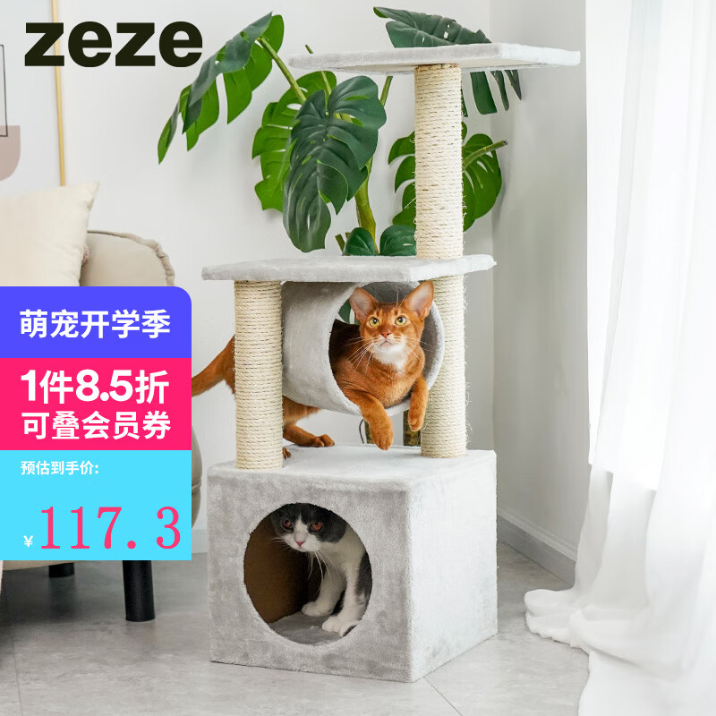 zeze猫爬架猫架猫窝一体猫抓柱多功能含吊床畅玩猫咪爬架 外贸同款灰色(高94cm)