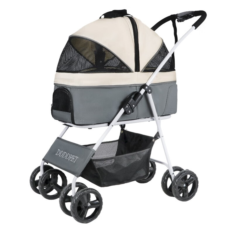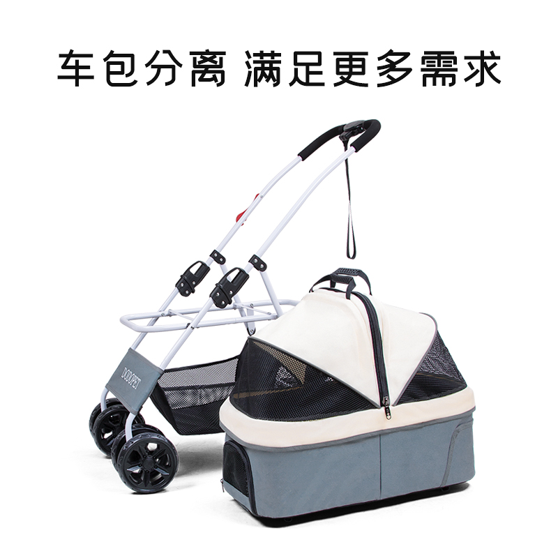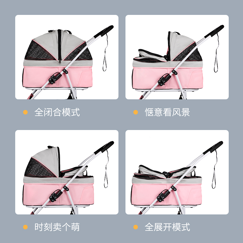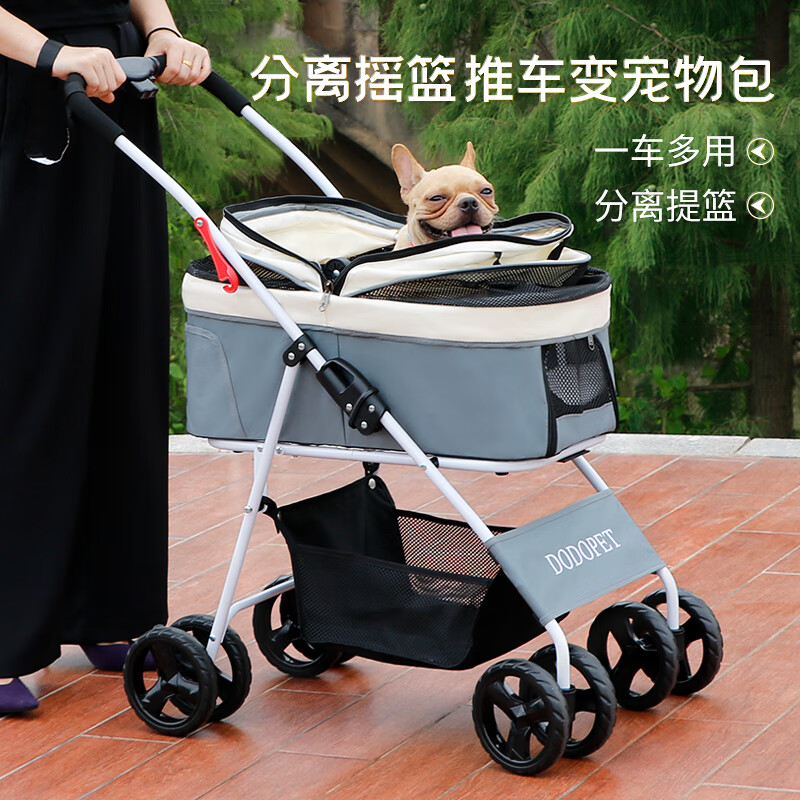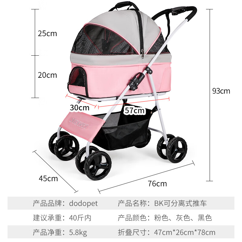 DO DO PET宠物推车柴犬柯基泰迪狗狗分离式推车便携折叠多宠猫咪外出遛狗车 粉色-提篮可分离-轻松折叠收车 建议承重40斤内的宠物