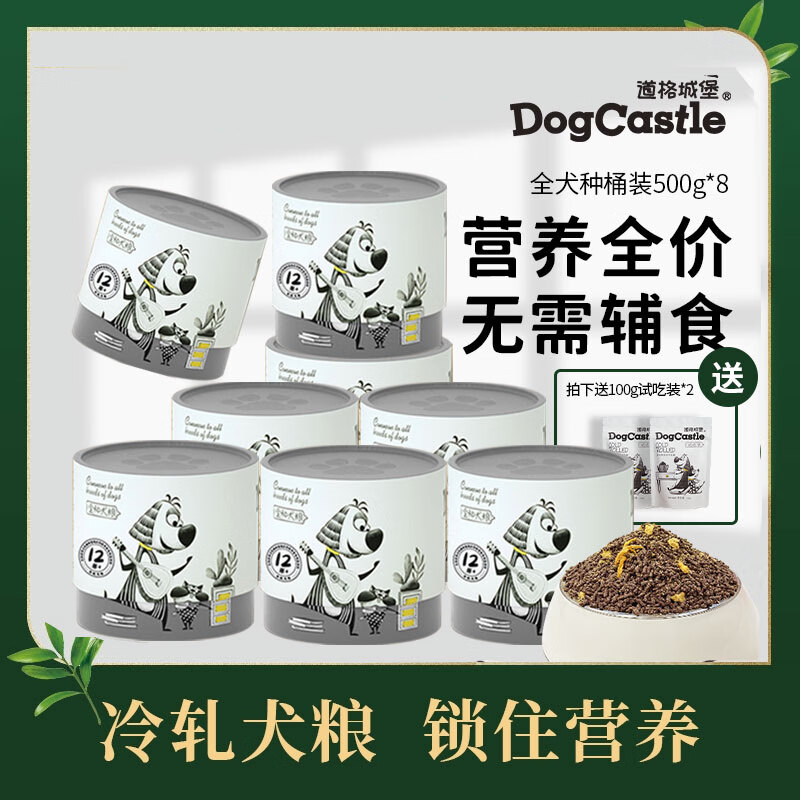 道格城堡到手8斤通用型全阶冷轧犬粮非膨化粮90%进口原料狗粮高价比桶装 DIY桶装500g*8桶
