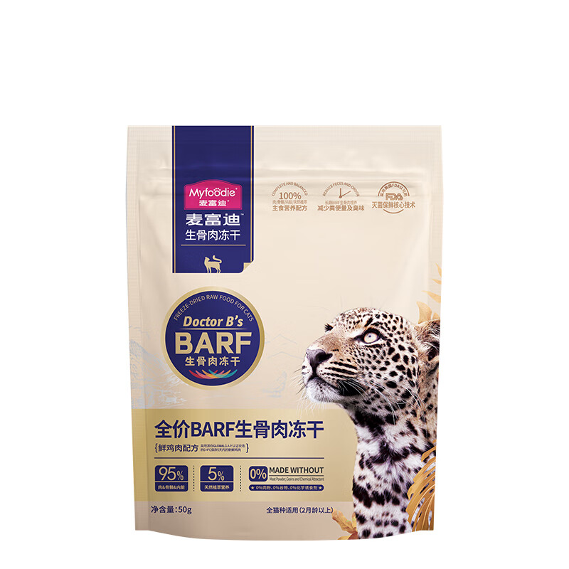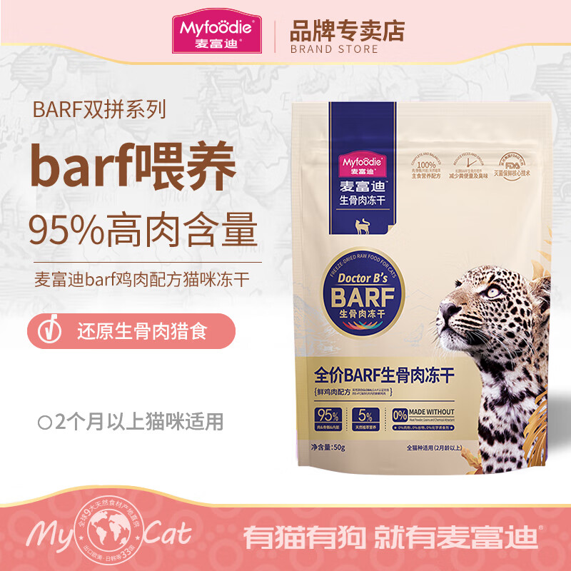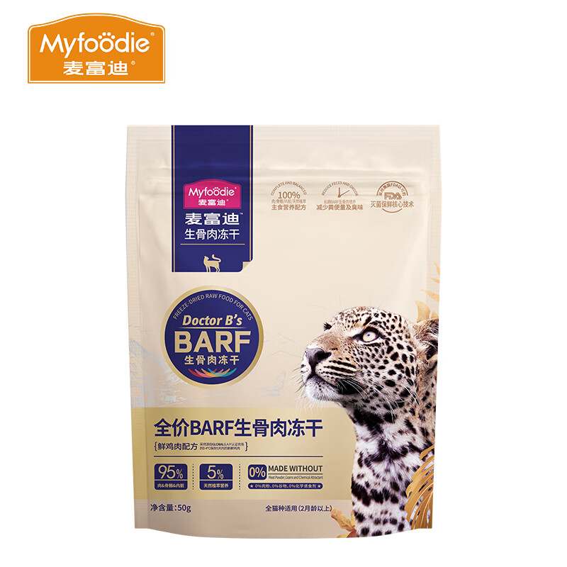 麦富迪barf生骨肉冻干猫粮 全价主食猫零食营养成幼全期 鲜鸡肉配方50g