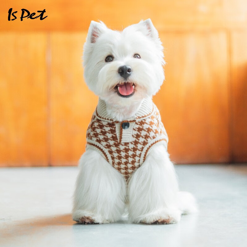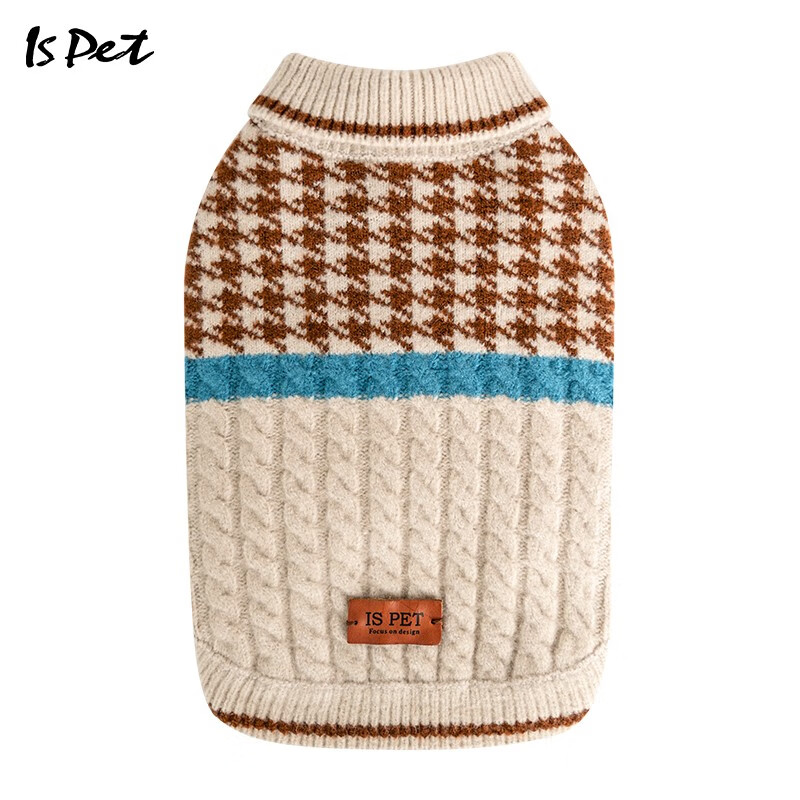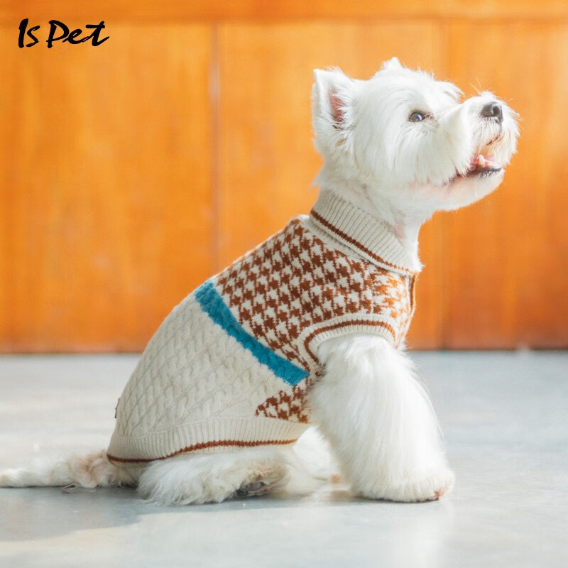 ISPET狗狗衣服秋冬装泰迪比熊吉娃娃衣服2022新款复古风拼接毛衣 棕色 2XL(建议17-22斤)