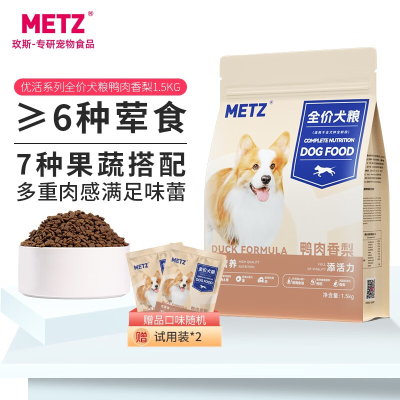 玫斯(metz)狗粮优活系列全价犬粮成幼犬全阶段通用主粮泰迪比熊萨摩耶 鸭肉香梨1.5kg