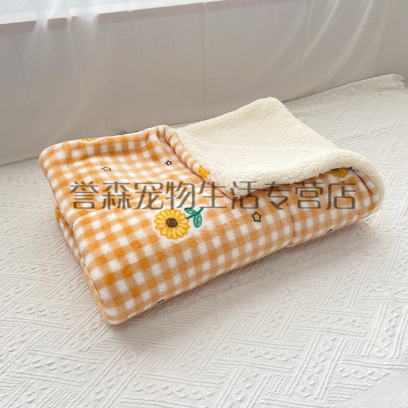 豆乐奇宠物毛毯加厚猫咪专用小毯子猫用垫子狗狗被子小狗睡垫冬天 橙黄格子 大号(70*100cm)