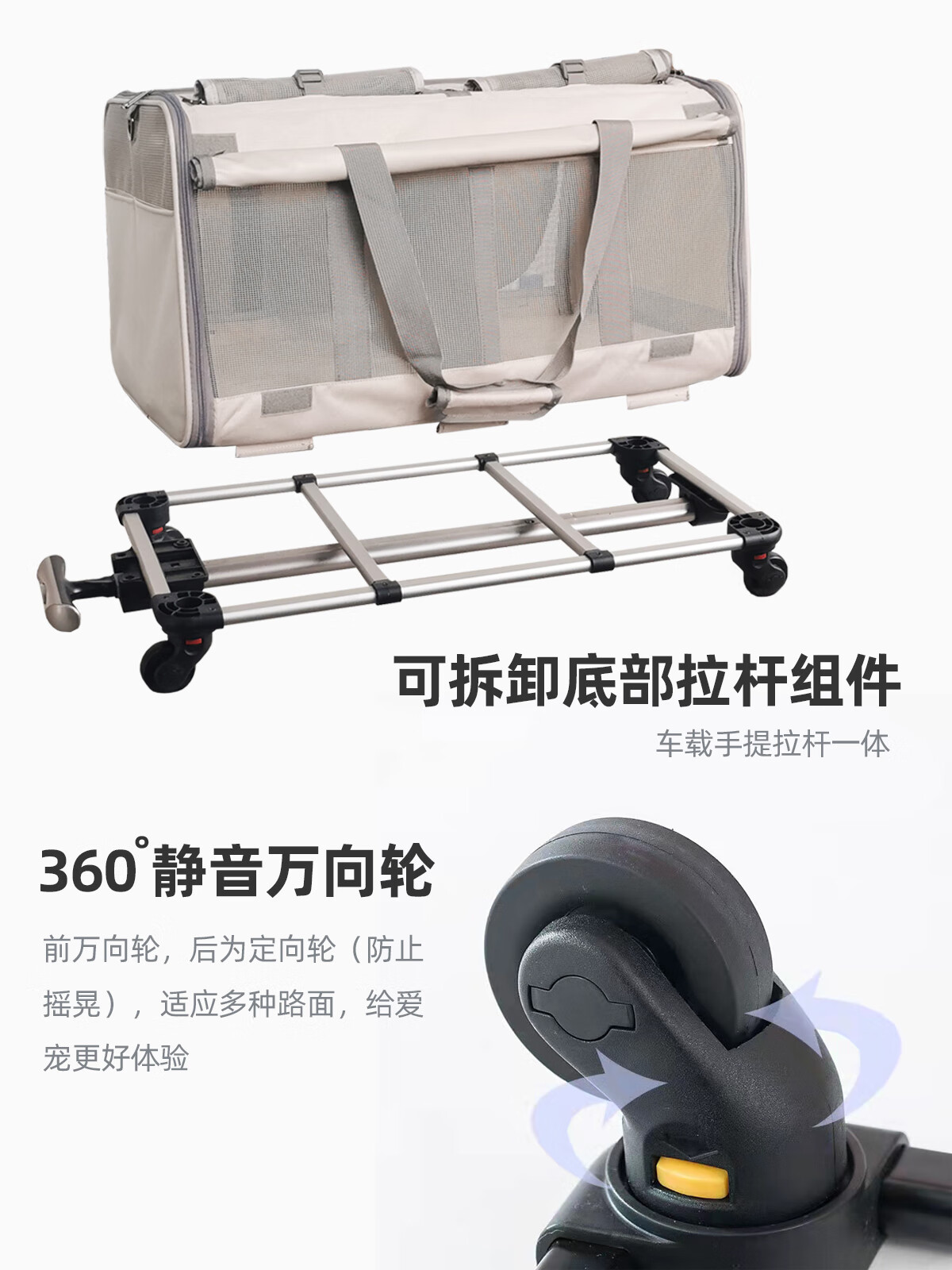 猫包特大号宠物拉杆箱大容量两厢多猫携带包猫包外出便携透气中小型犬猫笼子 米灰色两厢包_可隔两厢 L-大型