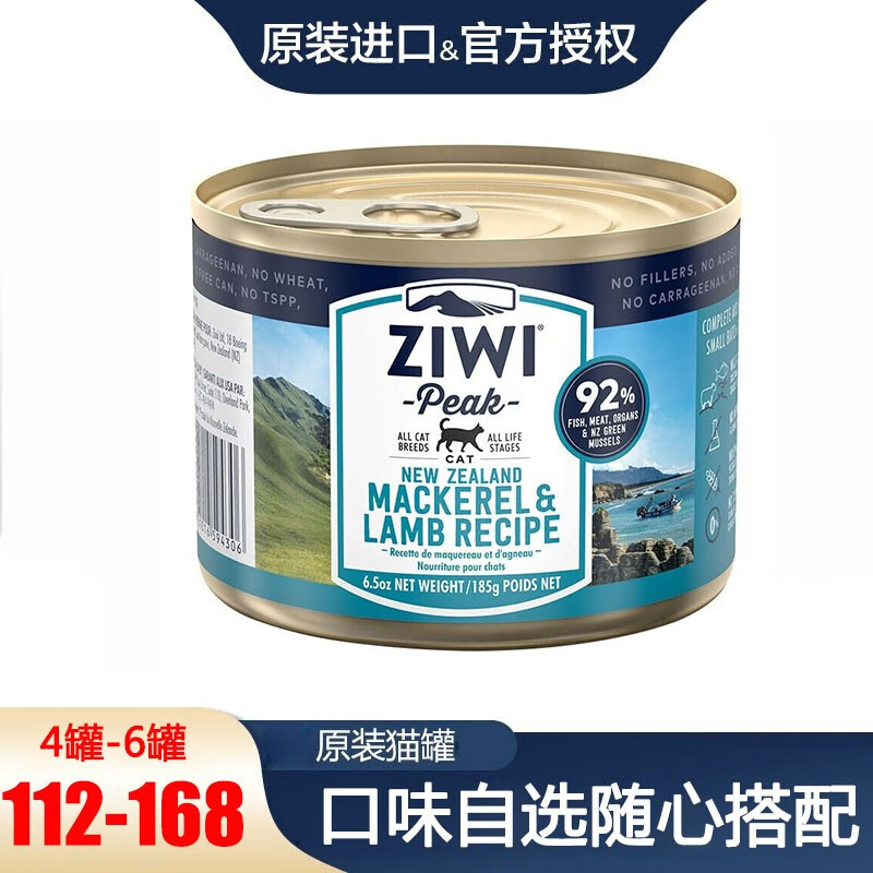滋益巅峰(ZIWI)猫罐头猫粮185g/罐新西兰进口主食罐全猫成猫幼猫通用湿粮猫罐头 马鲛鱼羊肉猫罐185g