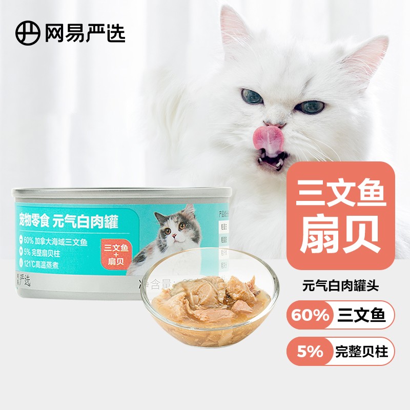 网易严选 元气白肉罐头 猫湿粮猫罐头宠物猫零食宠物食品零食多种口味可选 三文鱼 完整扇贝柱 85g*1罐