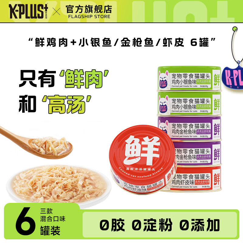 K-PLUS 猫罐头主食湿粮罐头猫咪零食 鲜肉浓汤补水鸡肉整箱 混合口味6罐