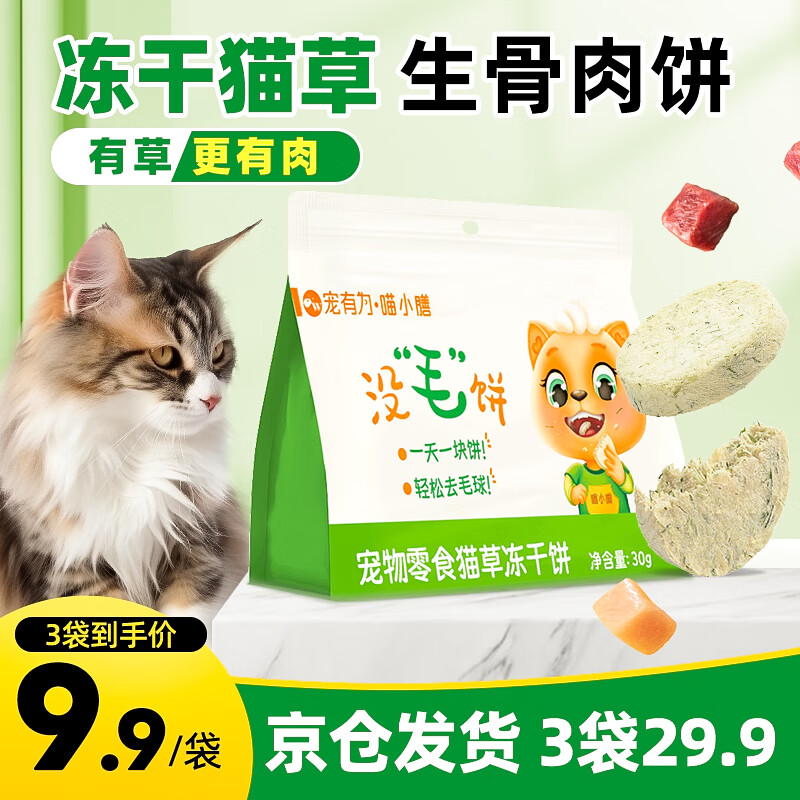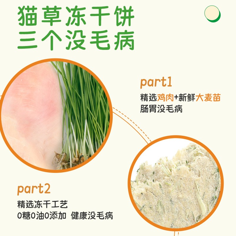 宠有为鸡肉冻干即食去化毛球猫草猫薄荷零食饼干 宠物猫草冻干饼 30g*1袋