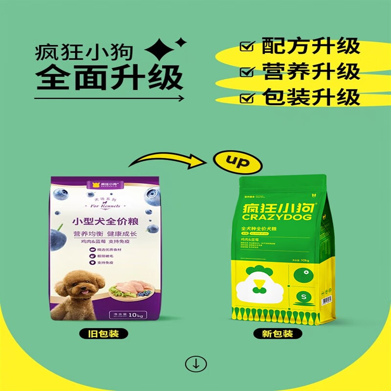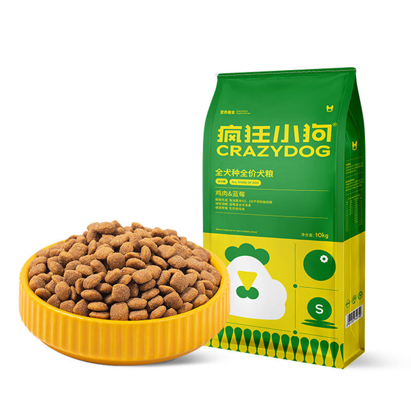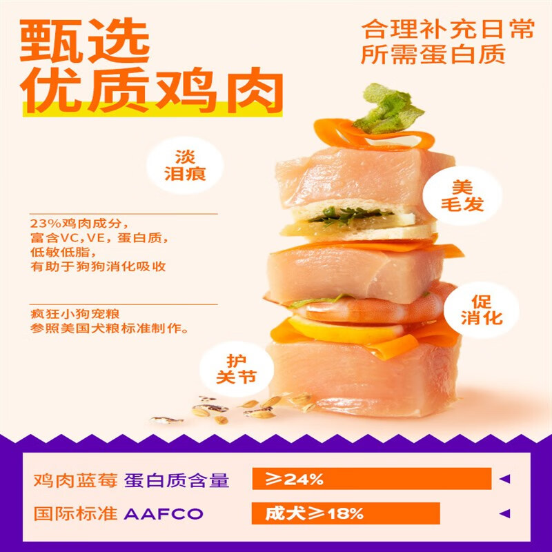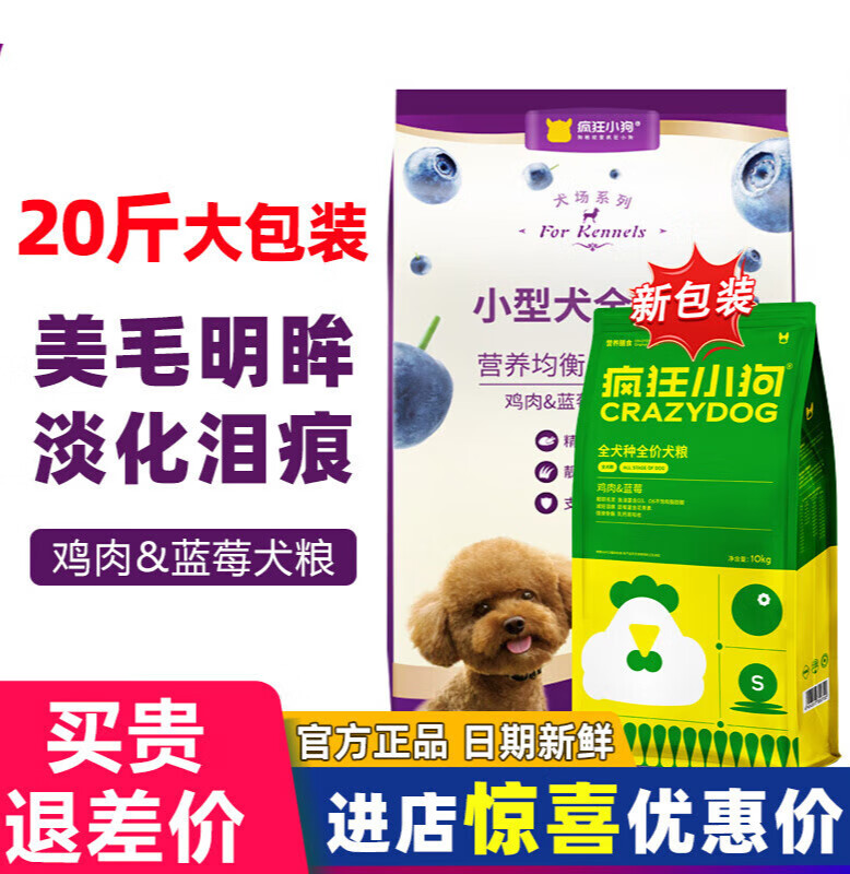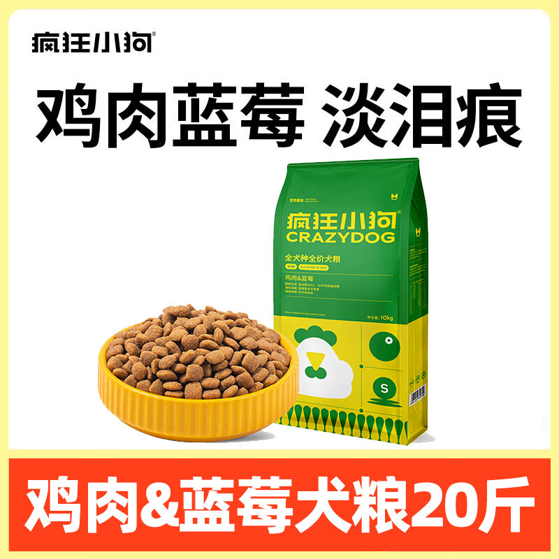 疯狂的小狗狗粮鸡肉蓝莓20斤泰迪比熊博美小型成犬幼犬通用型10KG 红色 2000g500g*4包