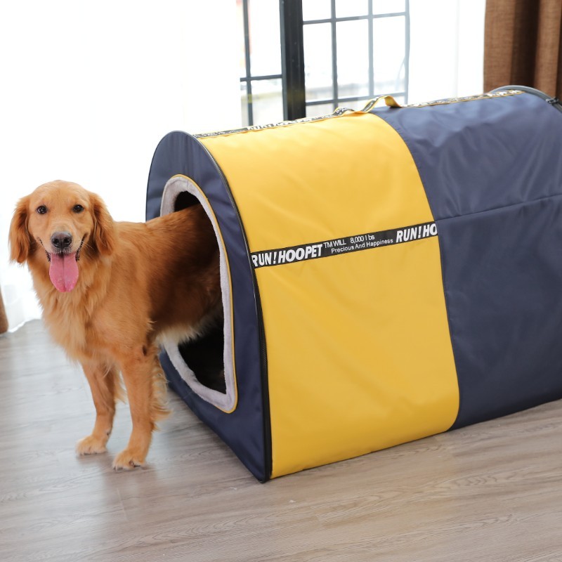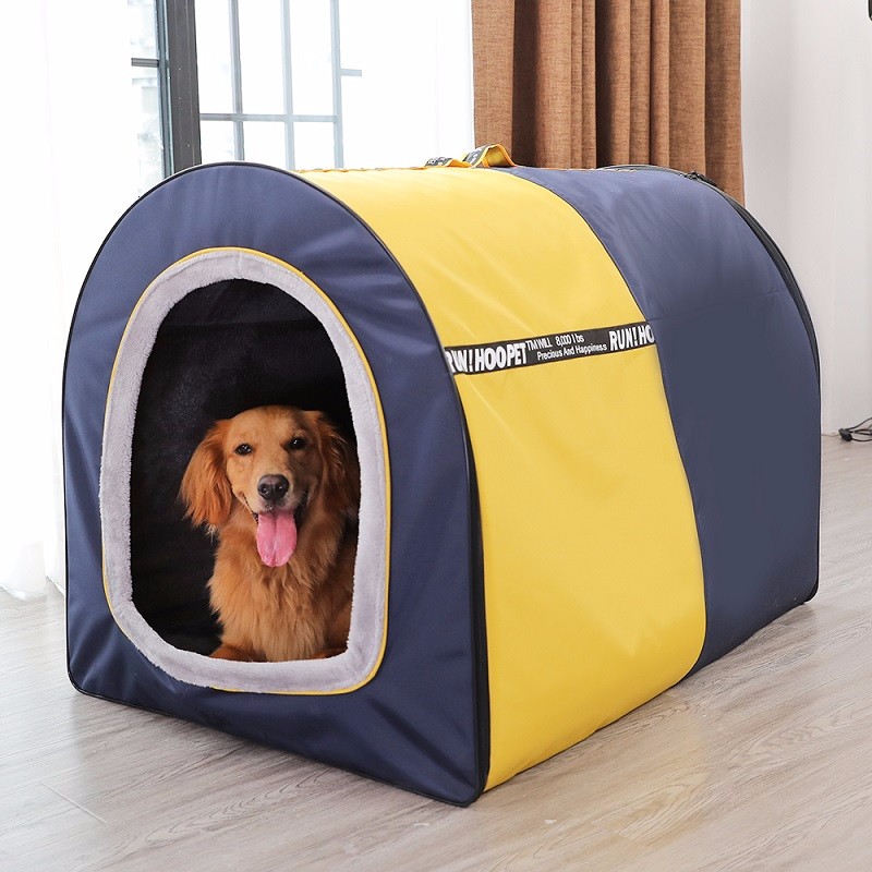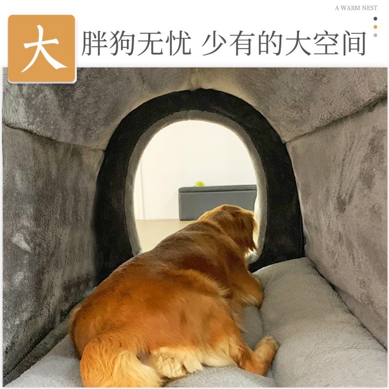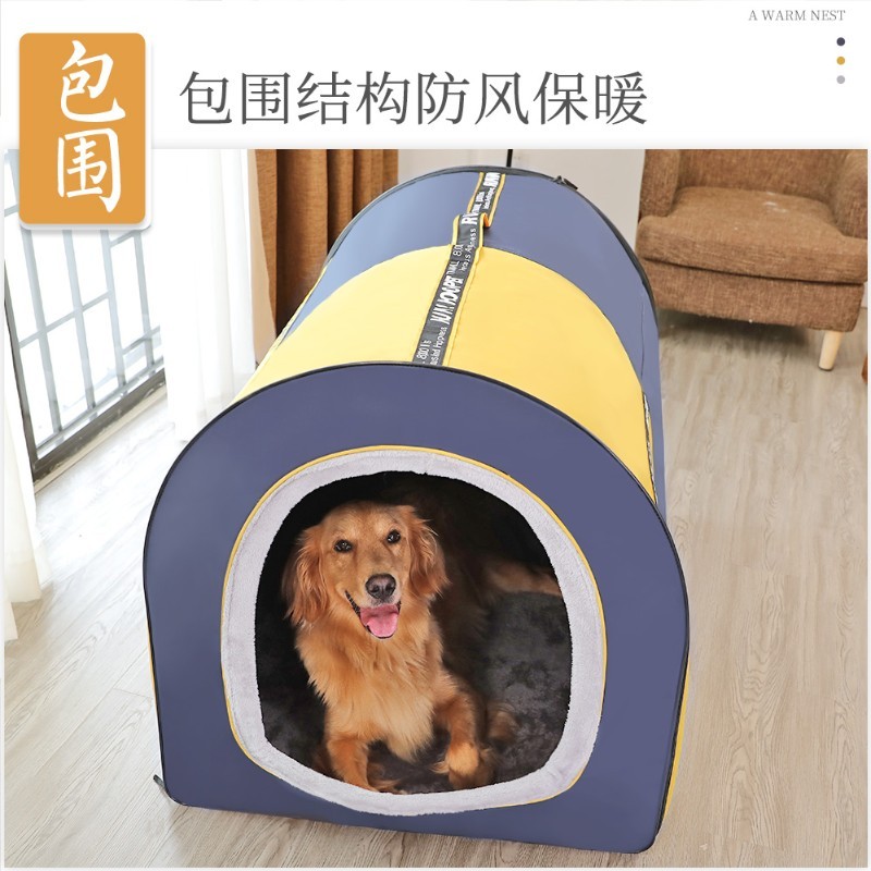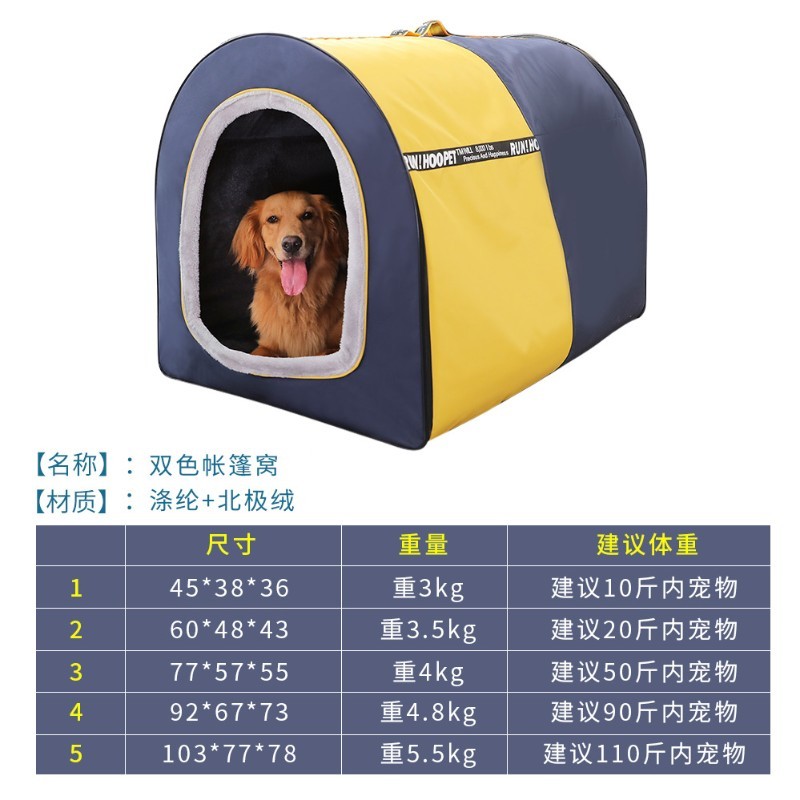 四面加绒】华元宠物保暖狗窝秋冬户外防风狗屋冬天加绒保暖室外室内车载狗笼狗狗冬季狗房子可折叠水洗带厚垫 双色大狗帐篷窝(内加绒) 1号(45*38*36,10斤内可用)