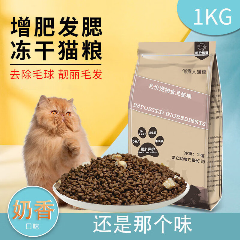 梦动【精选推荐】冻干猫粮增肥发腮成幼猫奶糕英短鱼肉低油低盐天然猫主粮 1袋2斤.