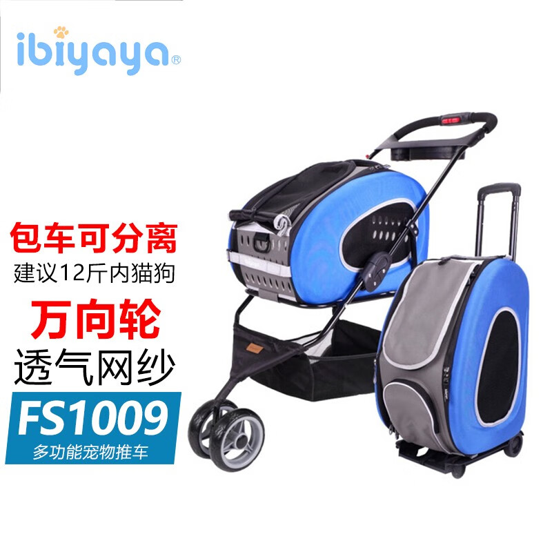 依比呀呀(ibiyaya)宠物推车可分离式猫咪小型犬FS1009狗推车可折叠双肩背包多功能 蓝色 承载6KG以内