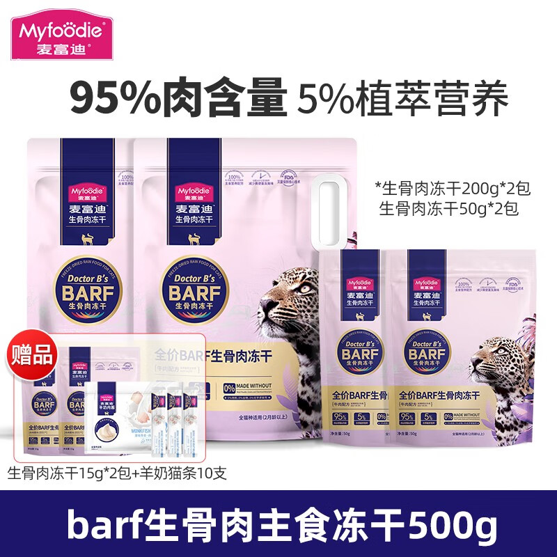 麦富迪(MYFOODIE)麦富迪猫粮 BARF霸弗生骨肉冻干全价猫主食冻干成幼猫通用猫干粮 牛肉配方 500g