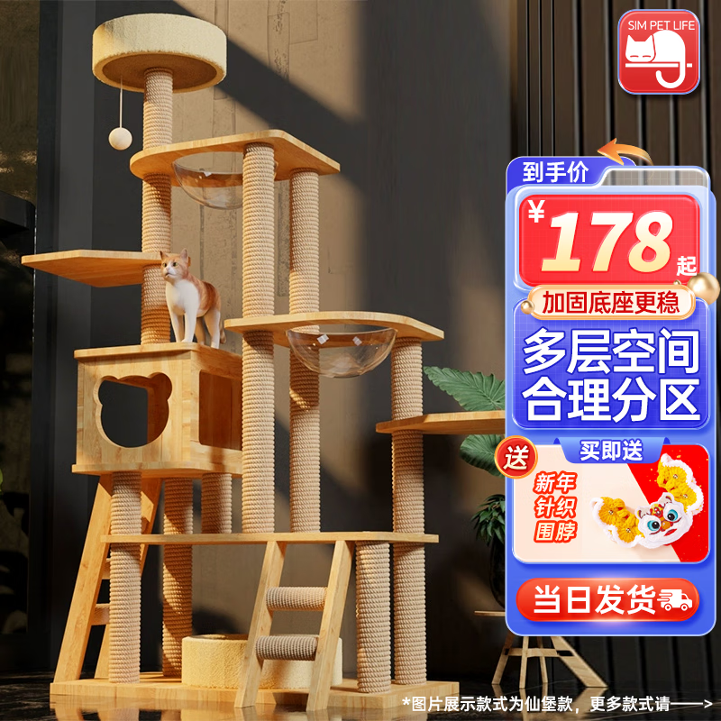 辛姆 猫爬架大型猫窝猫树一体猫抓板猫爬架子带窝小户型不占地猫抓柱猫架太空舱猫爪板猫跳台猫咪玩具用品 【图二款】基础城堡