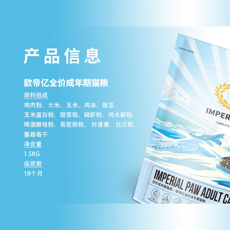 欧帝亿(IMPERIAL PAW)全价猫粮 成猫通用布偶橘猫英美短猫主食 (新款)6.8kg