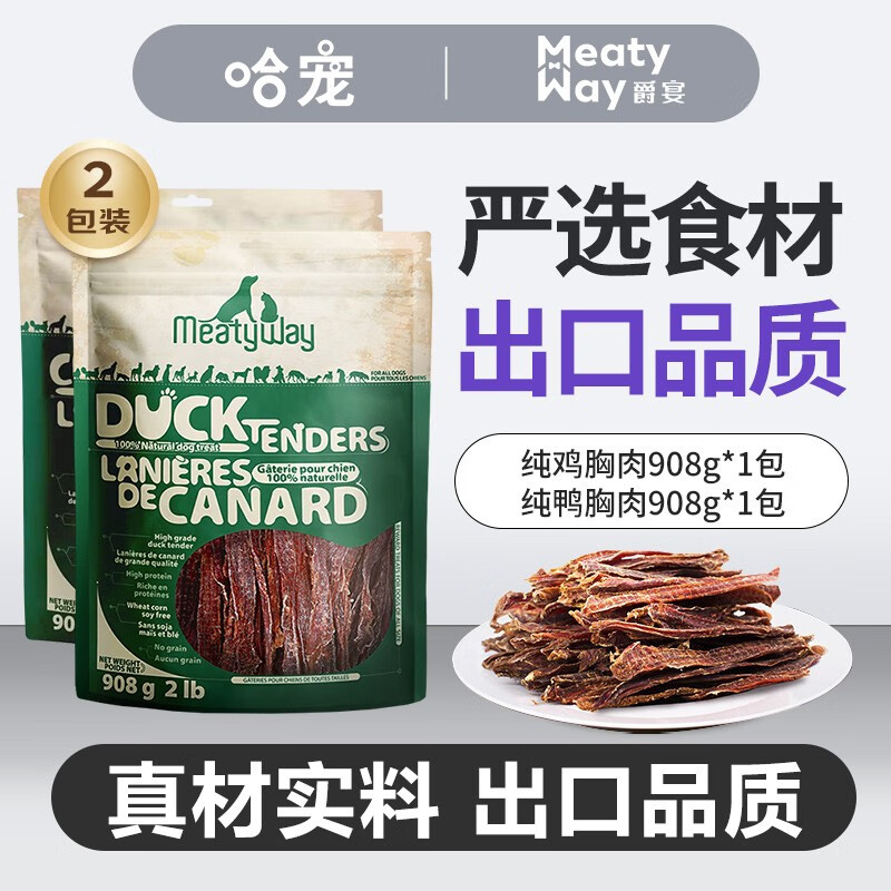 爵宴(MEATY WAY)【囤货装】狗狗零食鸭肉干大礼包 狗狗训练奖励零食宠物磨牙棒 纯鸭胸肉908g 纯鸡胸肉908g