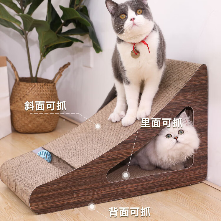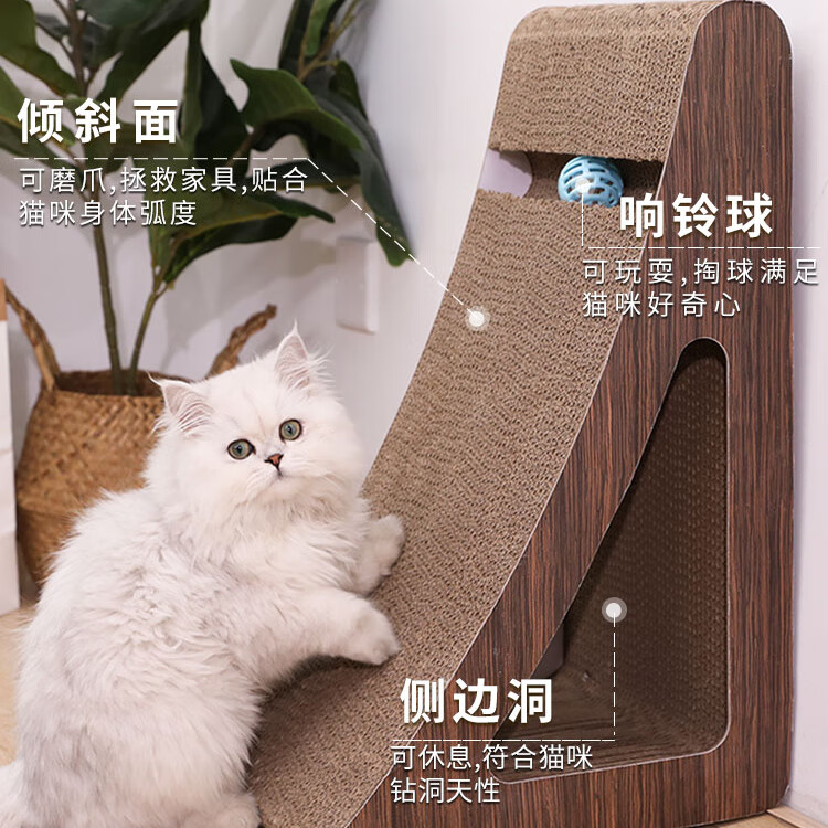 猫抓板招财可爱贴墙猫咪磨猫爪板网红双面铃铛三角猫玩具猫咪用品 款三角形猫抓板