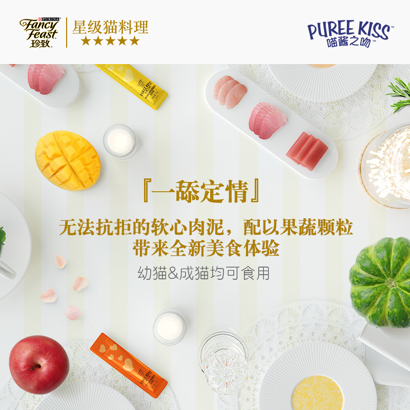 珍致(FancyFeast)猫条猫零食 泰国进口猫湿粮 妙鲜肉泥包 果蔬搭配 鸡肉南瓜味40g