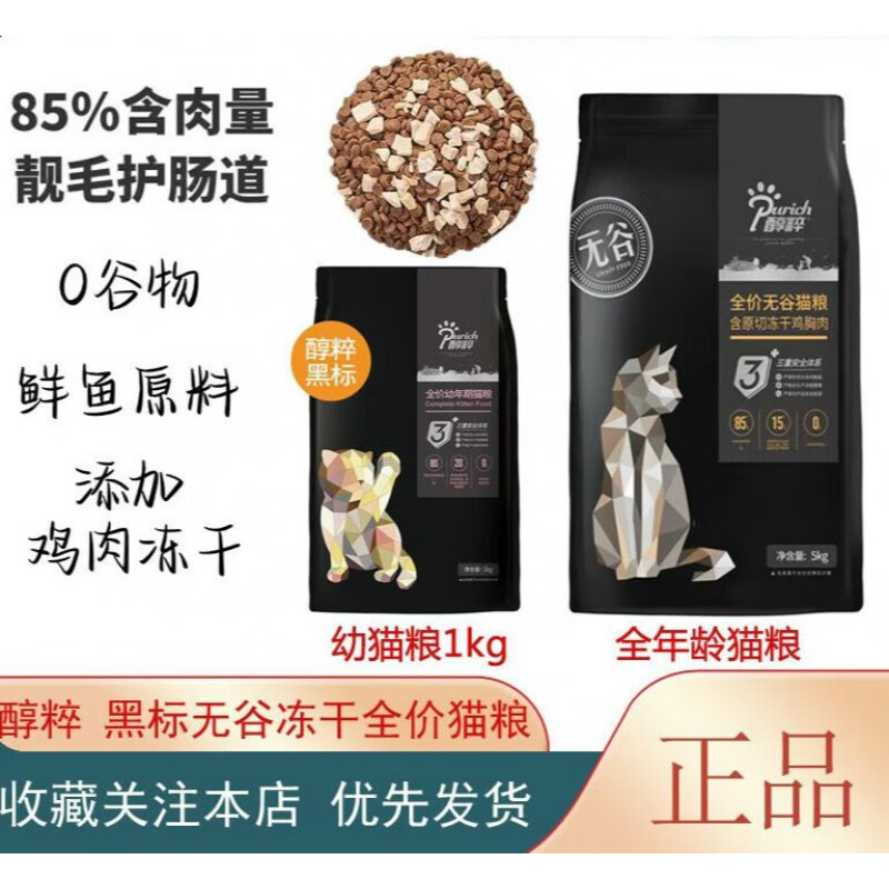 醇粹(Purich)黑标无谷冻干全价猫粮成猫幼猫通用粮增肥发腮含鲜鱼鸡肉原料 醇粹猫粮 1.5kg【无礼品】 防伪可查--新效期
