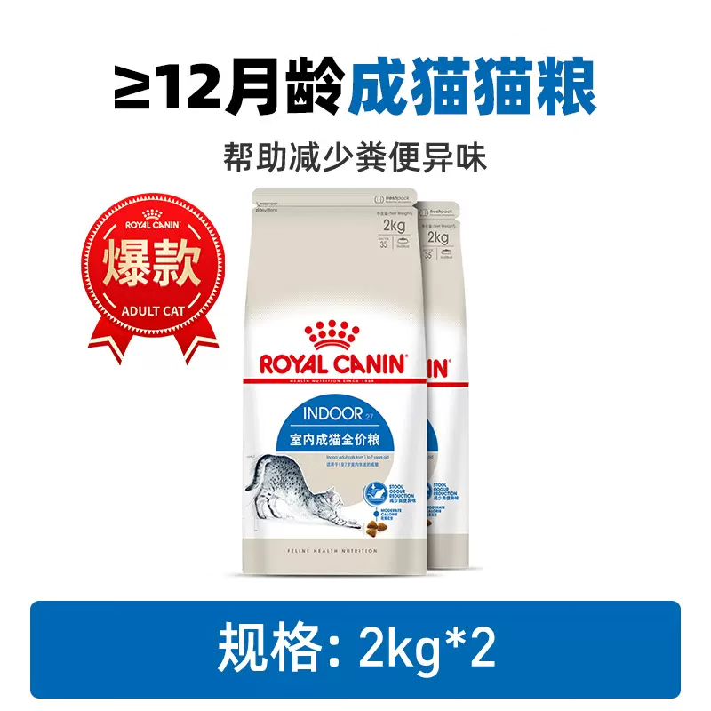 皇家(ROYAL CANIN)猫粮F32营养成猫粮I27室内全价猫粮英短美短布偶通用猫屋礼盒 ≥12月龄室内成猫粮I27/2KG*2 2kg