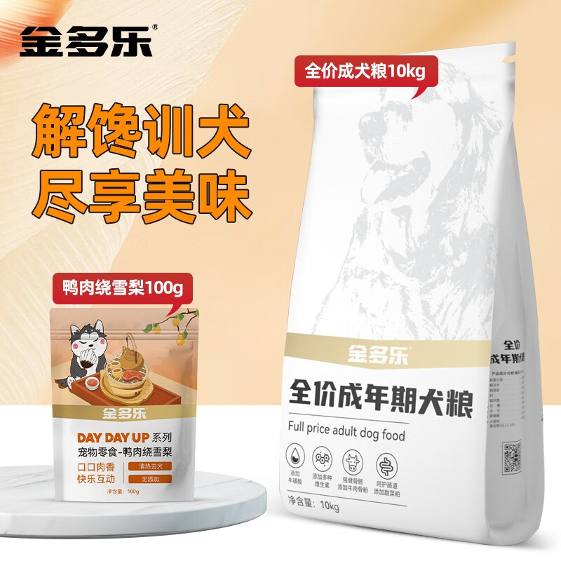 金多乐狗粮成犬粮小型犬大型犬泰迪金毛通用型狗粮 成犬粮10kg 鸭肉梨100g