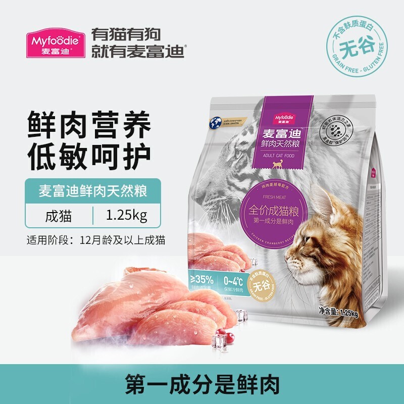 麦富迪猫粮 鲜肉倍护系列 无谷全价成猫粮宠物食品 添加风干黑肉粒 35%鲜肉 成猫1.25kg