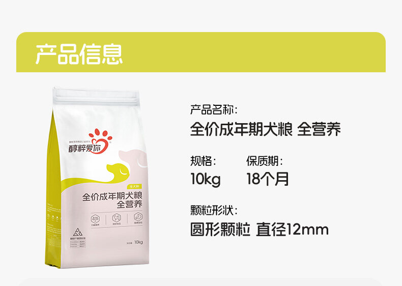 醇粹狗粮 醇粹爱你全犬种全价成年期犬粮全营养10kg