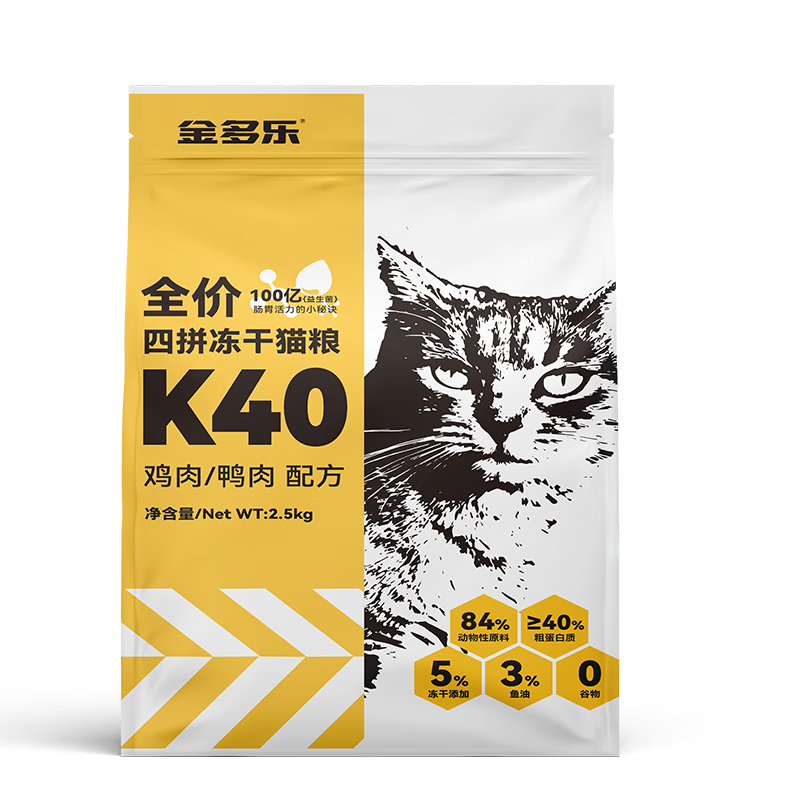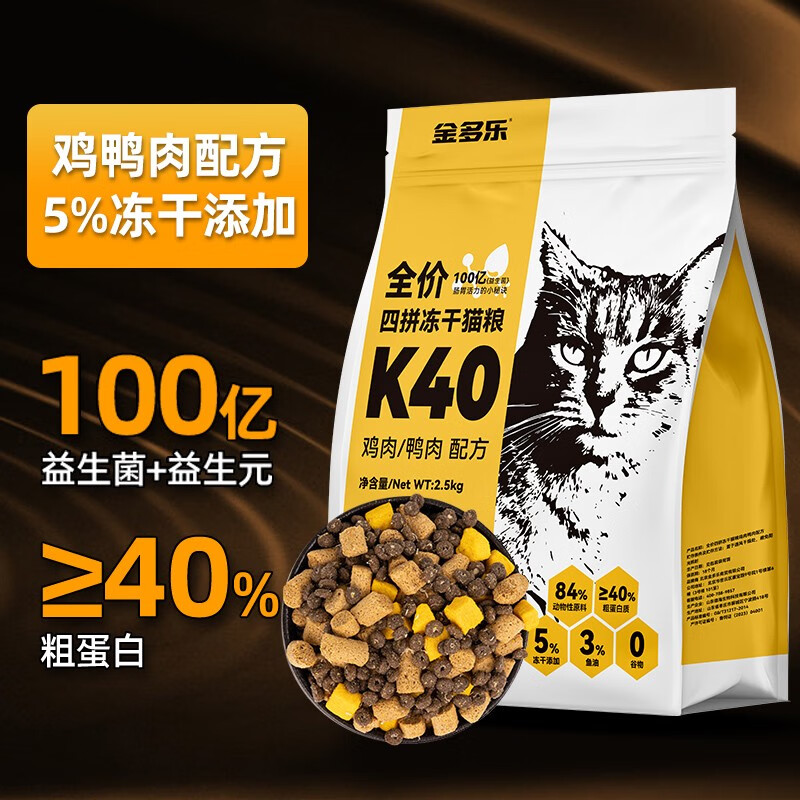 金多乐全价冻干猫粮主食英短美短成猫幼猫通用全阶段营养猫饭 冻干四拼猫粮2.5kg