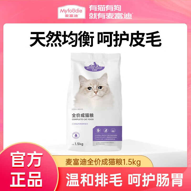 麦富迪(Myfoodie)麦富迪猫粮贝特鲱系列全价营养天然高蛋白成猫幼猫全猫种通用型 [三文鱼 鸡肉营养配方]成猫粮 1.5kg