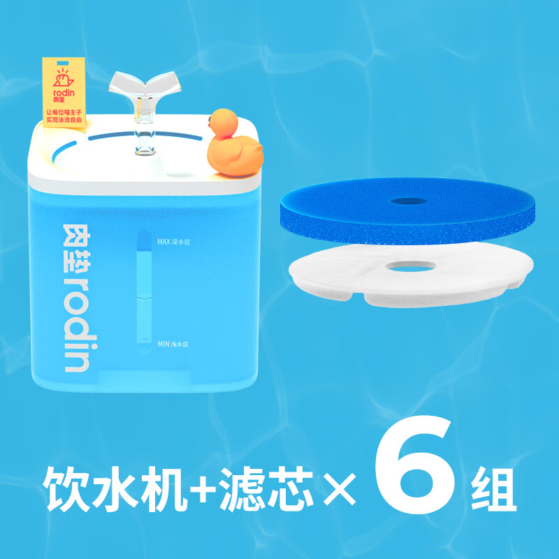 肉垫(rodin)宠物饮水机水泵更安全自动循环流动水猫咪喂水器拆洗更方便 小黄鸭版饮水机 滤芯*6