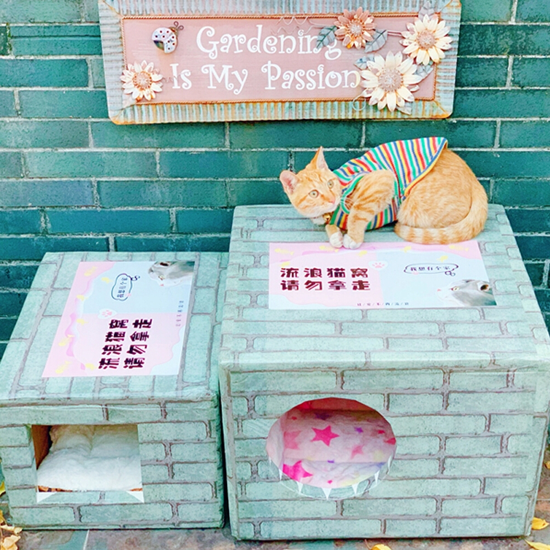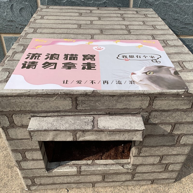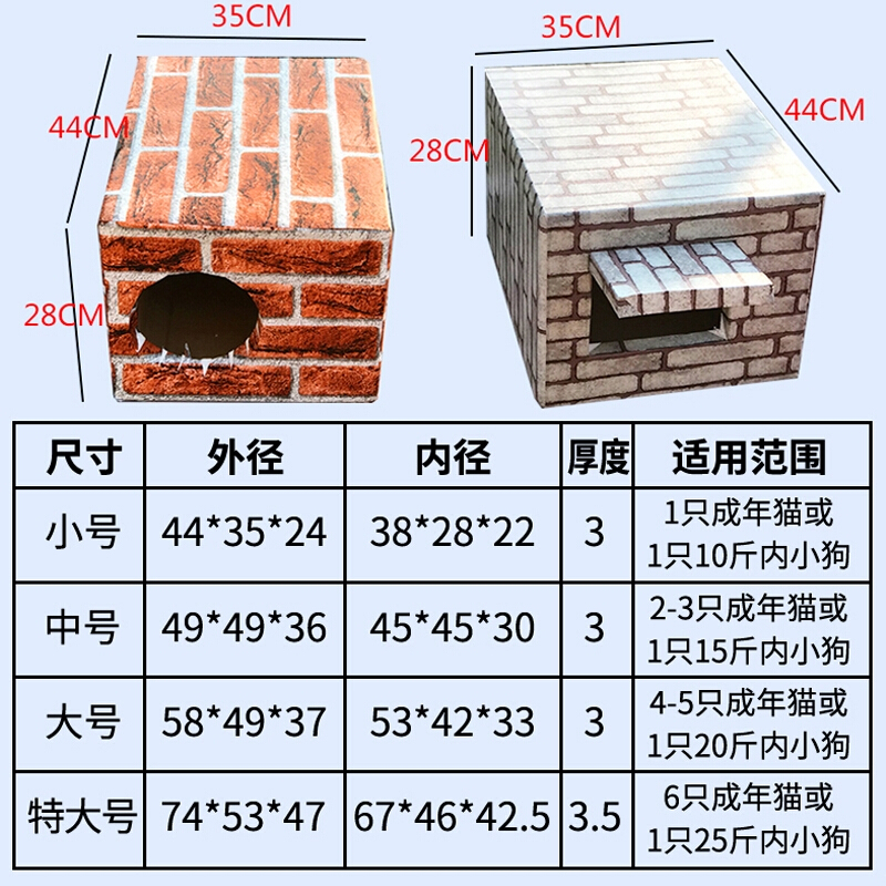 HKNA 流浪猫窝室外防雨保暖泡沫流浪狗窝户外猫舍猫屋野猫封闭式 浅灰色 方孔 小号44*35*27厘米适合一只猫
