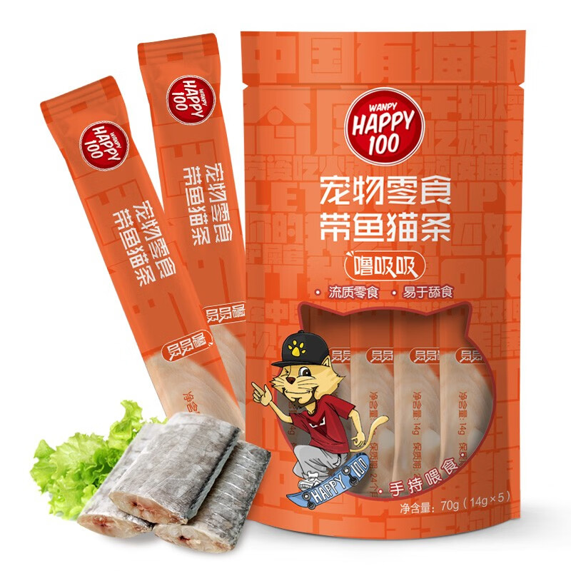 Wanpy顽皮噜吸吸猫条零食营养条 妙鲜猫咪湿粮流质补水猫零食 成猫幼猫湿粮包猫咪流质湿猫粮拌饭零食 带鱼口味 5包装(25支)