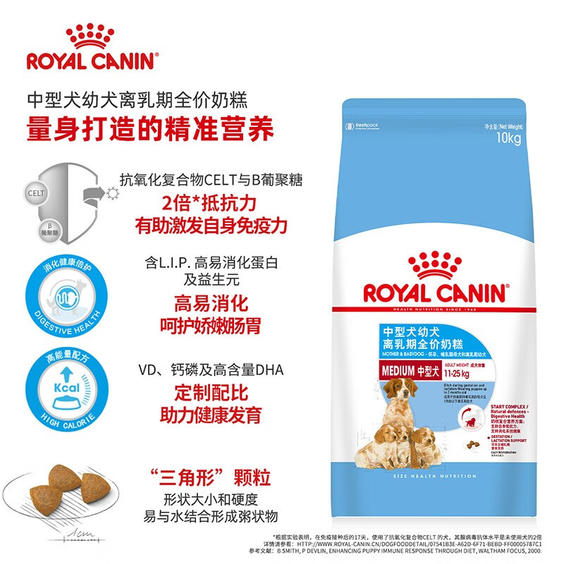 皇家狗粮(Royal Canin)幼犬奶糕 中型犬通用 支持消化系统健康 1KG(临期2023-5-17)