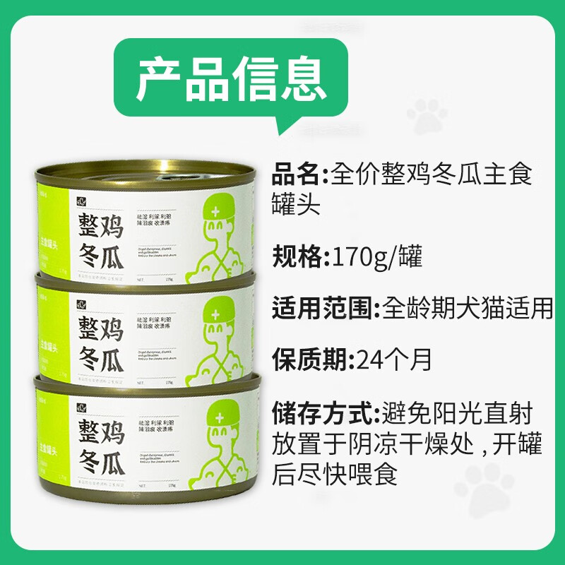 兽医张旭 整鸡冬瓜猫罐头狗罐头主食湿粮 狗狗猫咪零食鲜肉拌饭全价营养配方 幼猫成猫幼犬成犬通用型 尝鲜装(170g*12罐)