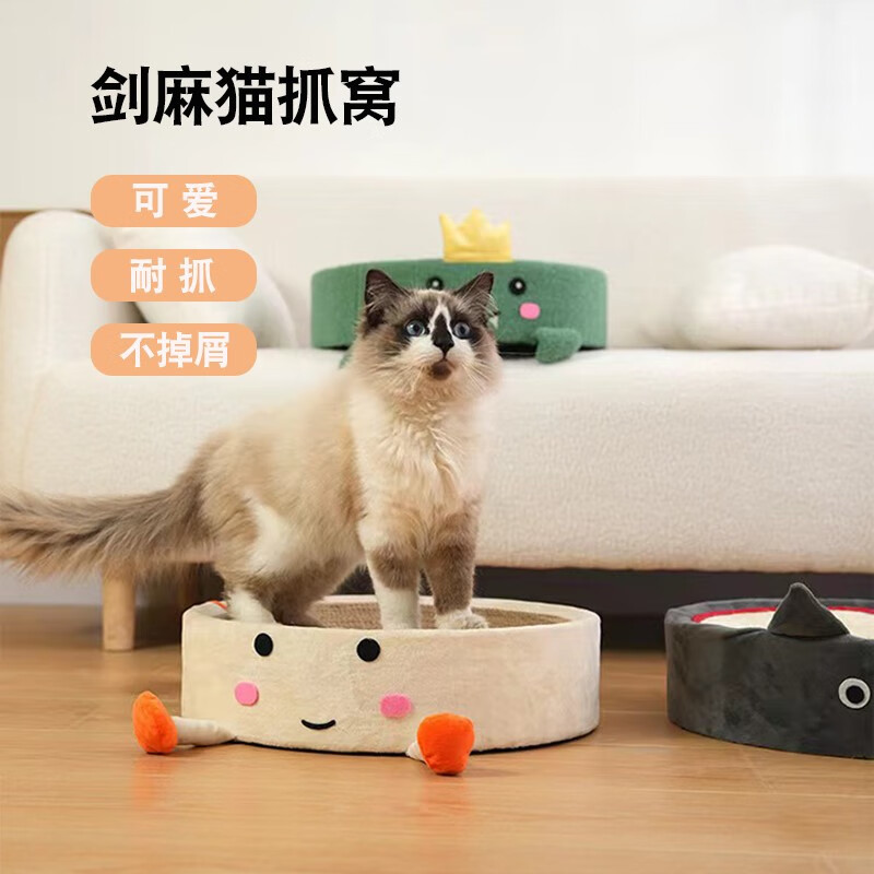 Pets Galaxy猫抓板圆形剑麻盆猫窝耐磨不掉屑磨爪卡通猫咪猫玩具 龙猫猫抓盆