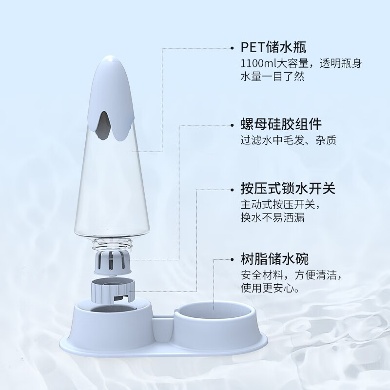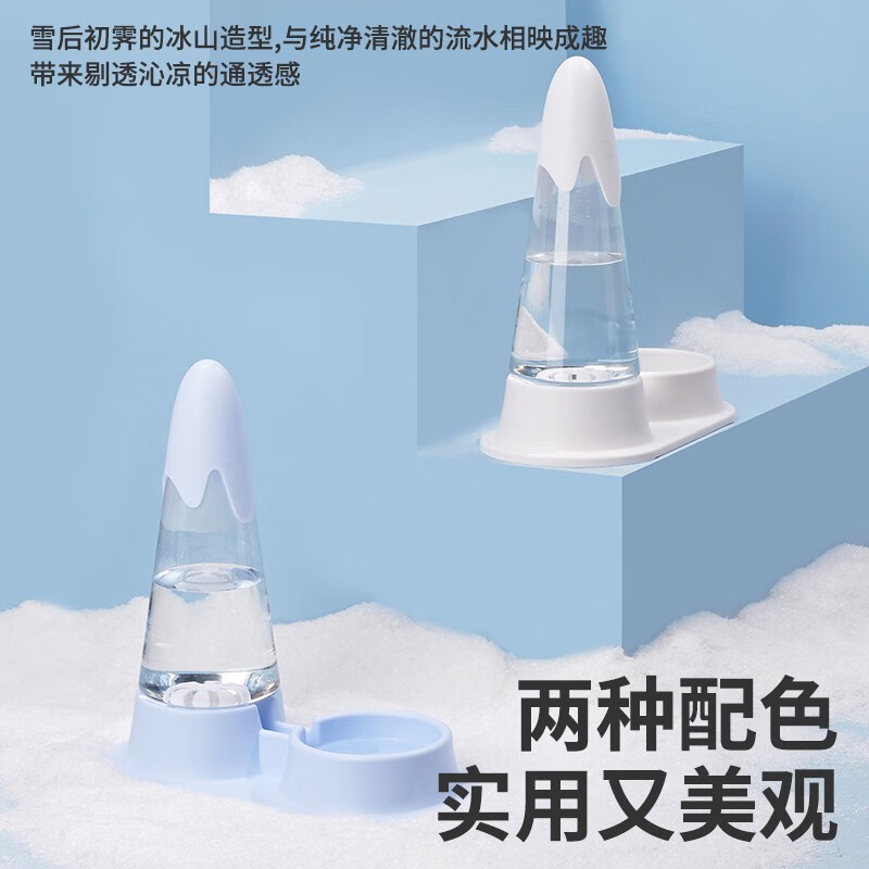 ZEZE雪山宠物饮水机半自动喂食器猫狗饮水器猫咪喝水流动水不插电 白色