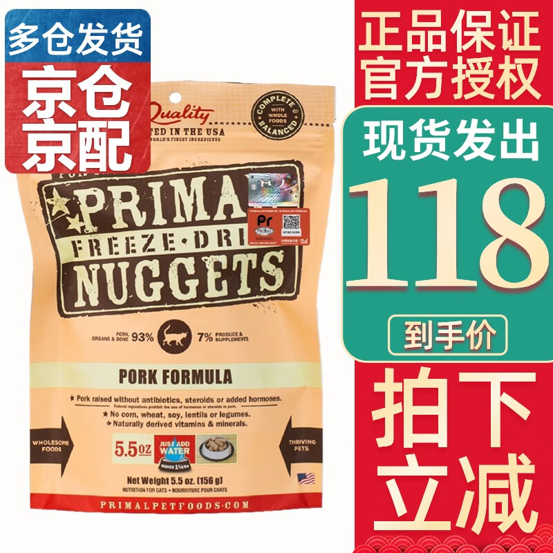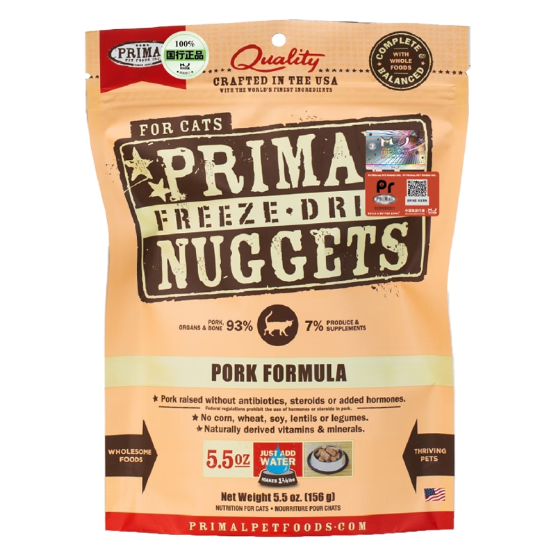 普瑞摩PR冻干猫粮猫主食干粮零食鸡肉鱼肉冻干猫粮生骨肉 猪肉味156g(24年7月起)