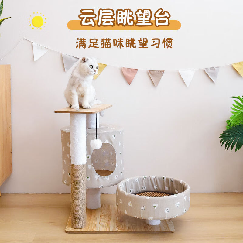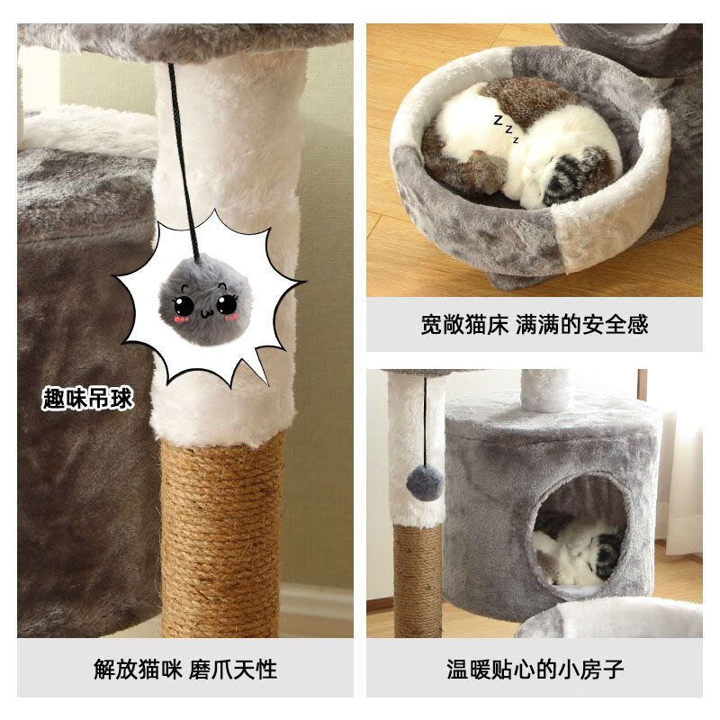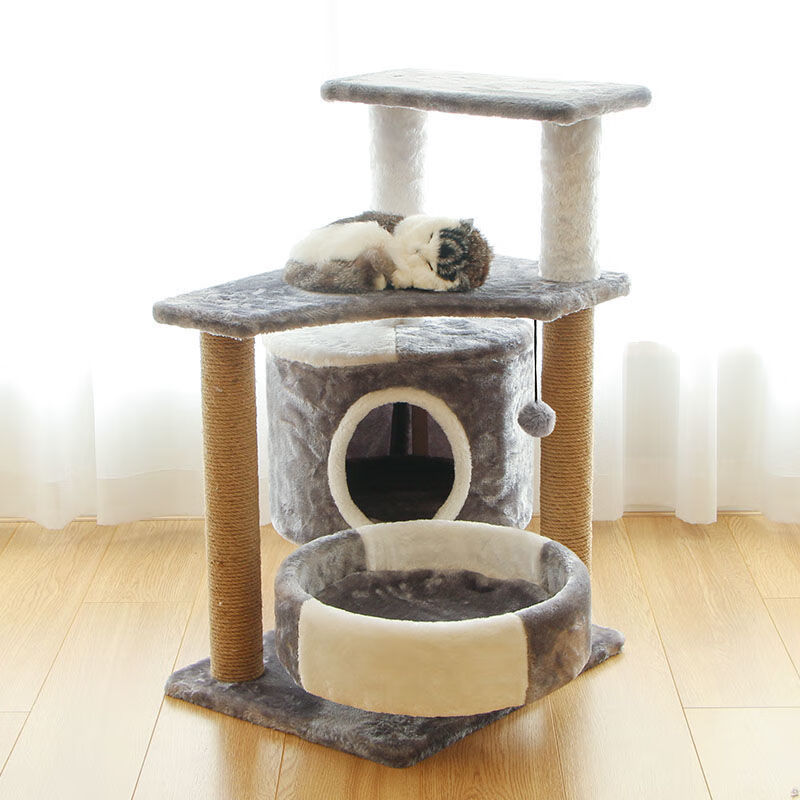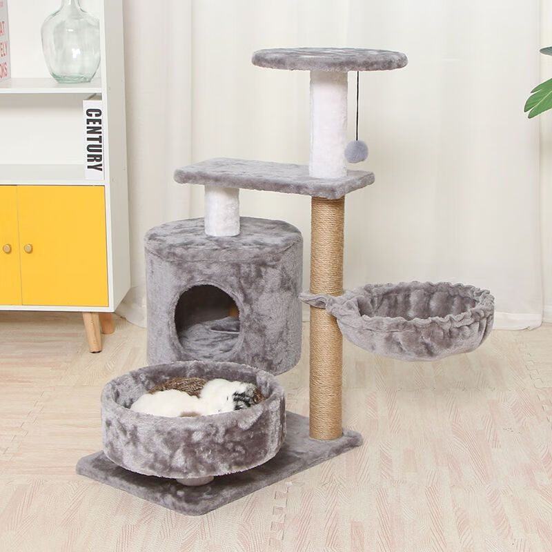 猫架猫爬架小型猫窝猫树一体式猫咪玩具猫抓板剑麻猫抓柱四季通用 3层绒布基础款-灰色 10斤内可用