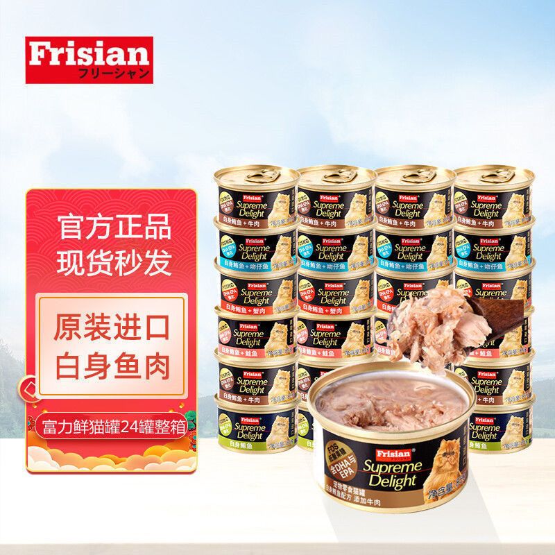 富力鲜(Frisian)猫罐头猫零食白身鲔鱼牛肉鲑鱼成幼猫主食猫湿粮 【白身鲔鱼 牛肉】85g 24罐(原厂直供)