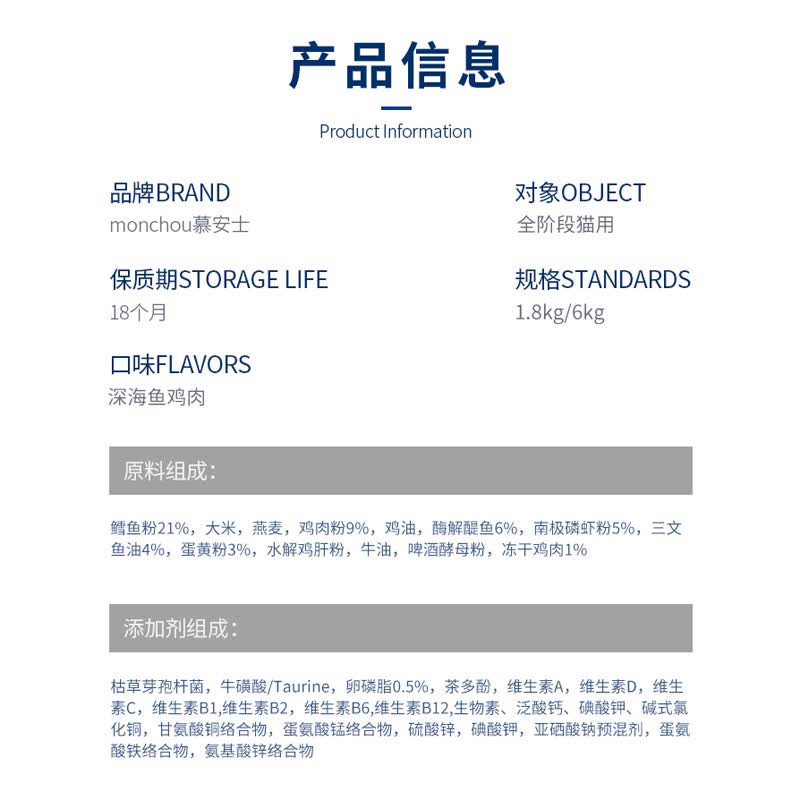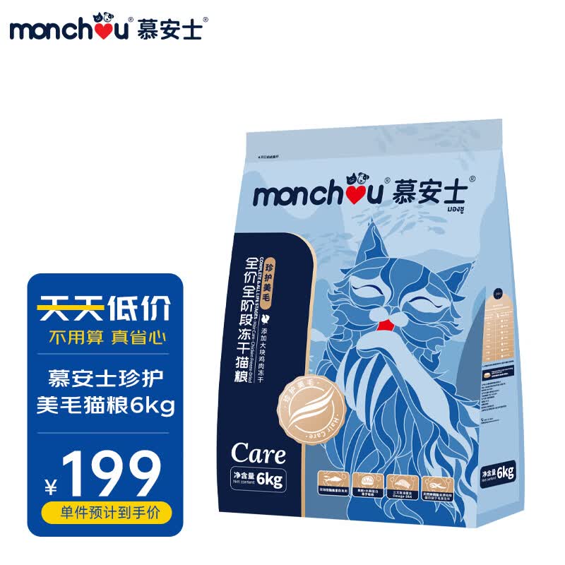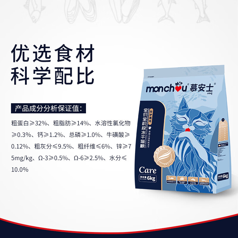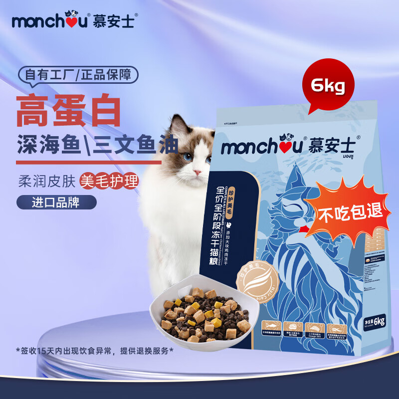 慕安士(monchou)冻干猫粮 主粮幼猫成猫粮全阶段珍护美毛亮毛6kg