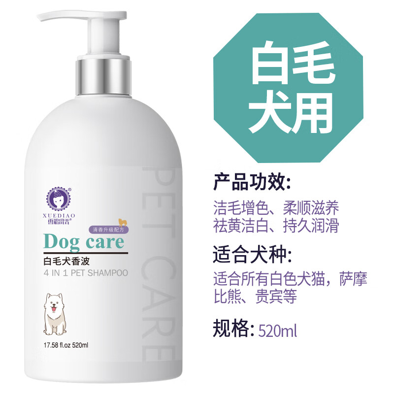 雪貂留香宠物狗狗沐浴露泰迪金毛贵宾博美洗澡液护毛素清香升级款专用香波 【单瓶】白色毛犬