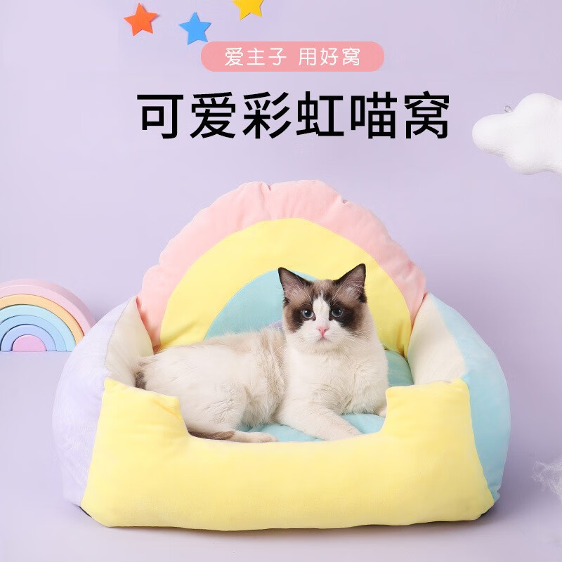 嘻哈鸭 彩虹猫窝狗窝宠物窝沙发床宠物睡垫子四季可用猫床宠物用品 彩虹猫床(46CM)