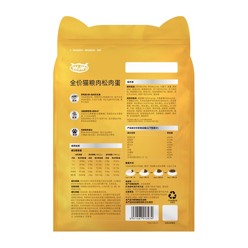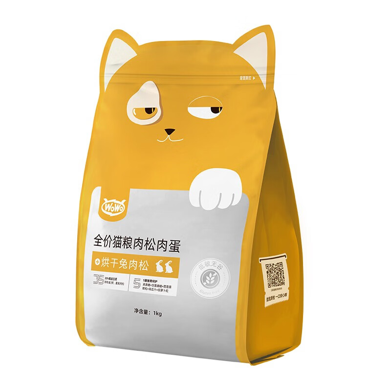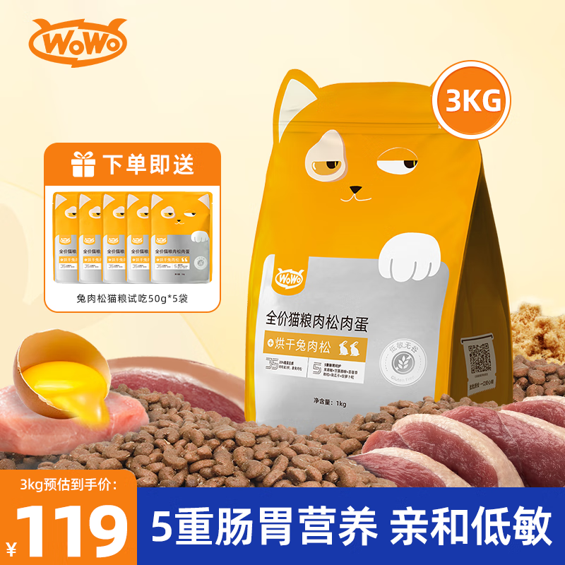 喔喔猫粮 成猫幼猫通用全价国产无谷低敏营养高蛋白猫粮 兔肉松猫干粮 1kg*3袋