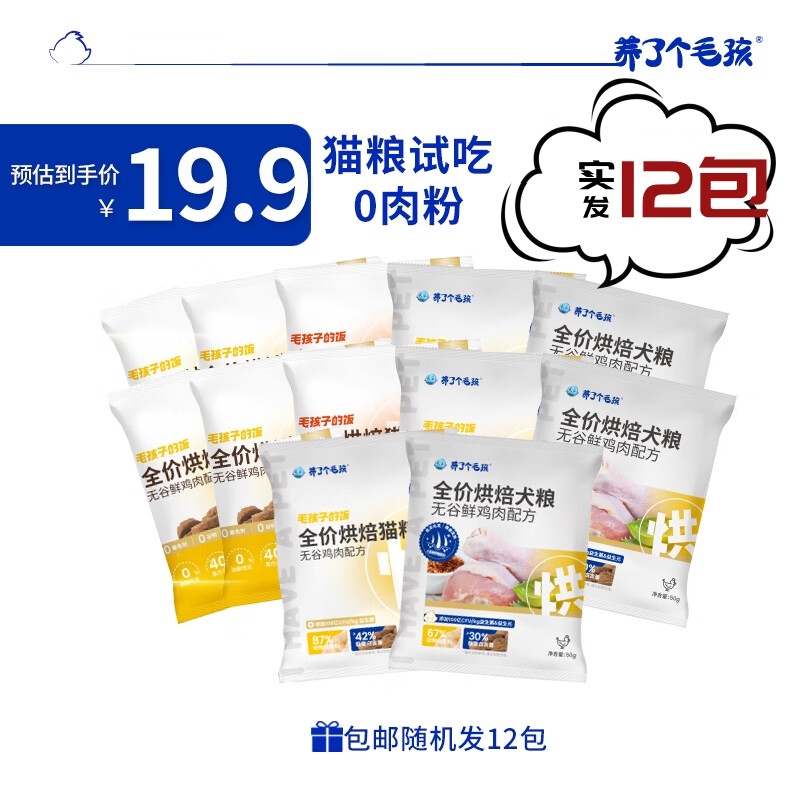 养了个毛孩成猫幼猫全价烘焙猫粮冻干真鲜肉通用粮天然无谷粗蛋白营养猫条 19.9试吃烘焙猫粮(25g*12) 包