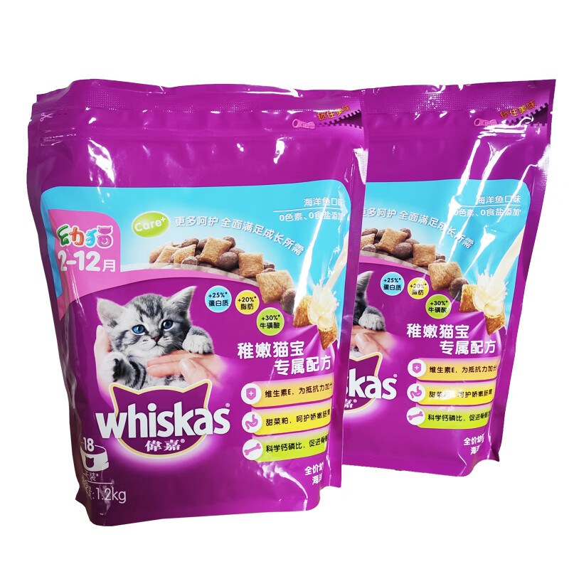伟嘉幼猫粮1.2kg 海洋味吞拿三文蓝猫英短美短增肥2-12月猫粮 海洋味*2.袋 1.2k.g