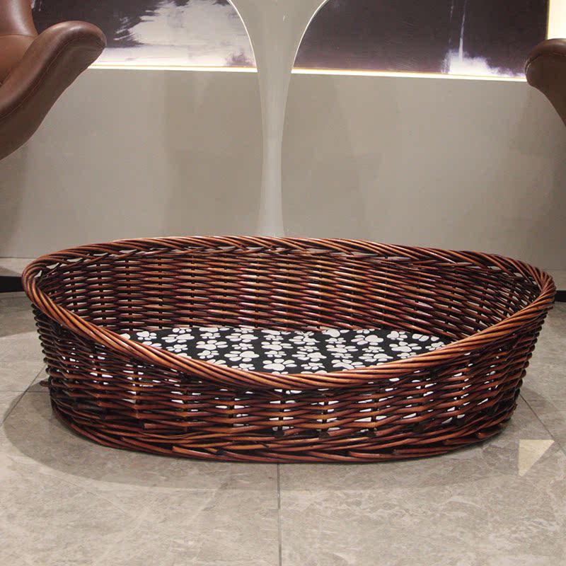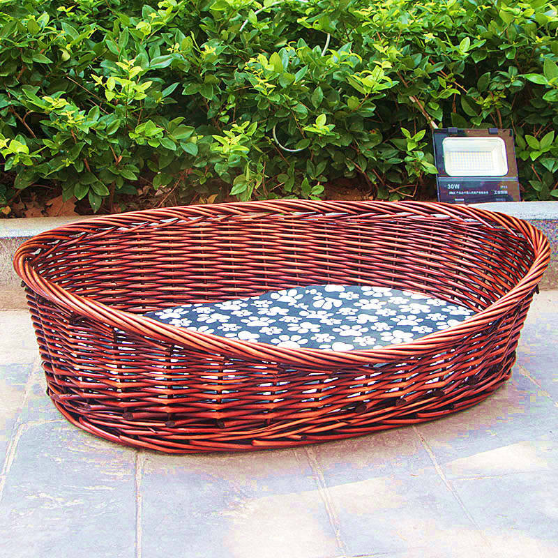 笼趣加粗藤编可拆洗狗窝柳编宠物窝泰迪金毛大型犬狗窝狗床四季可用窝 经典红棕色 软垫 大号1.03米x75住90斤