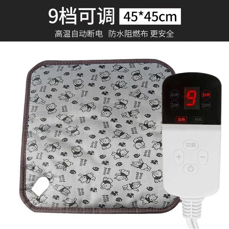 Chongdogdog宠物电热毯 小狗窝猫咪发热垫子防水耐抓小猫用小型恒温垫秋冬 9档定时方形(防水灰色熊45x45cm)