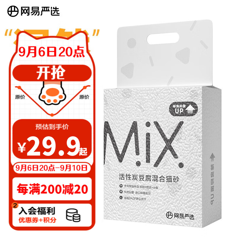 网易严选 活性炭豆腐猫砂混合猫砂除臭无尘易结团长效抑菌猫用品猫砂2.5kg 单袋